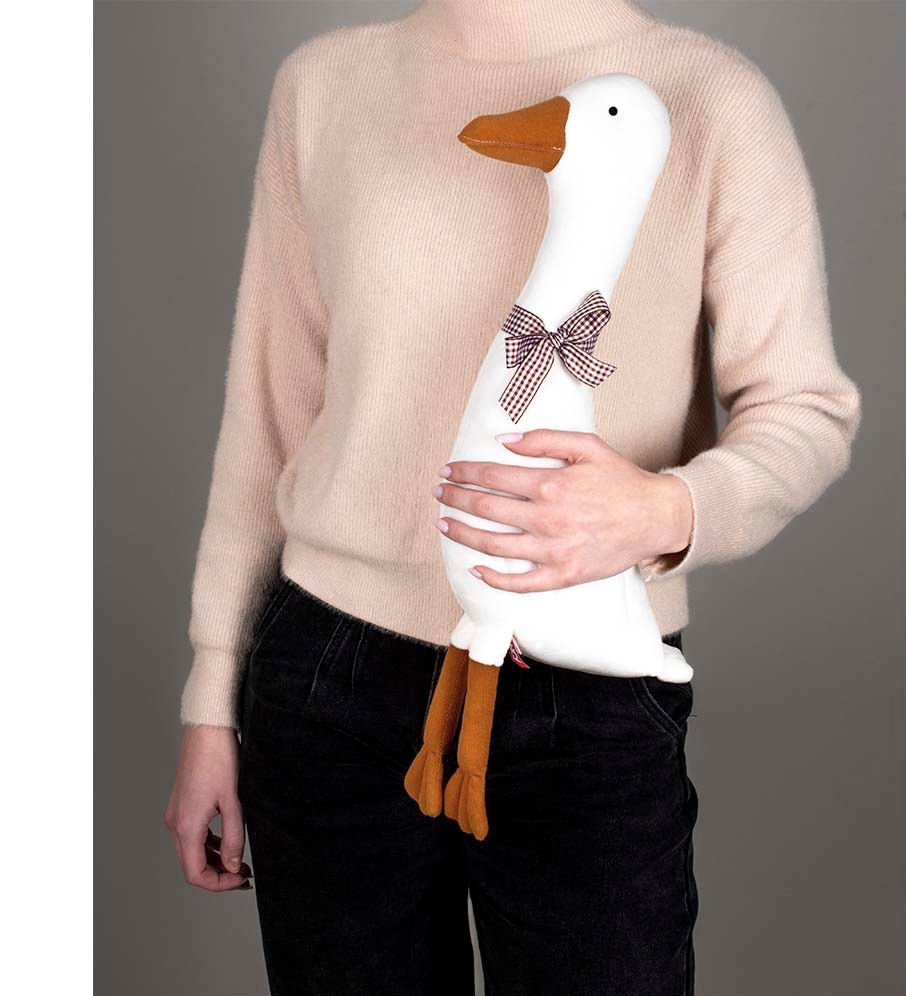 Подарочная мягкая игрушка Гусь Гуссейн Fancy GUS1. Знакомьтесь, это очаровательный галантный гусь Гуссейн — новый хит среди трендовых мягких игрушек от белорусского бренда FANCY! Если вы желаете удивить кого-то, то этот плюшевый друг достоин того, чтобы стать подарком самому близкому другу или члену семьи! Гуссейн, как и полагается настоящему гусю, имеет белое "оперение" — плюшевое тело, которое невообразимо приятно на ощупь, его так и хочется обнимать и гладить. При этом, если гусь внезапно запачкается — не торопитесь его отчитывать, достаточно постирать с мылом (можно даже в стиральной машинке).