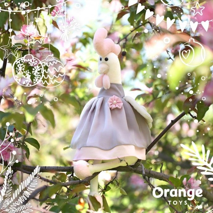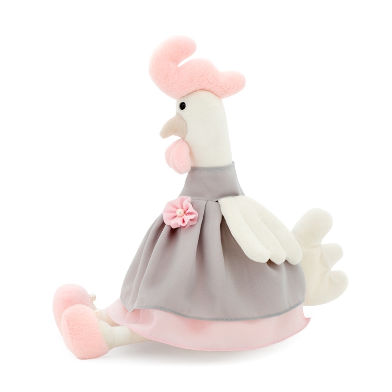 Курочка имеет приятный внешний вид, а одета она в симпатичный наряд с маленькой розочкой.