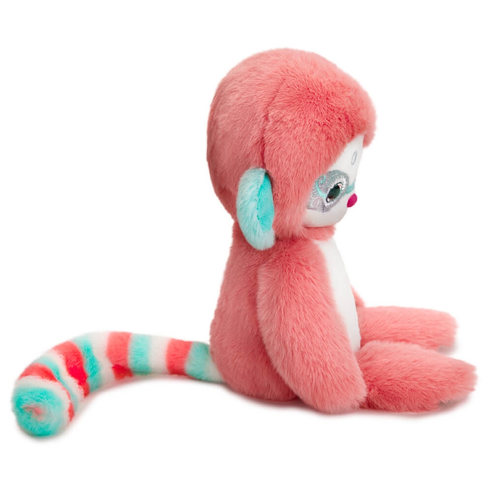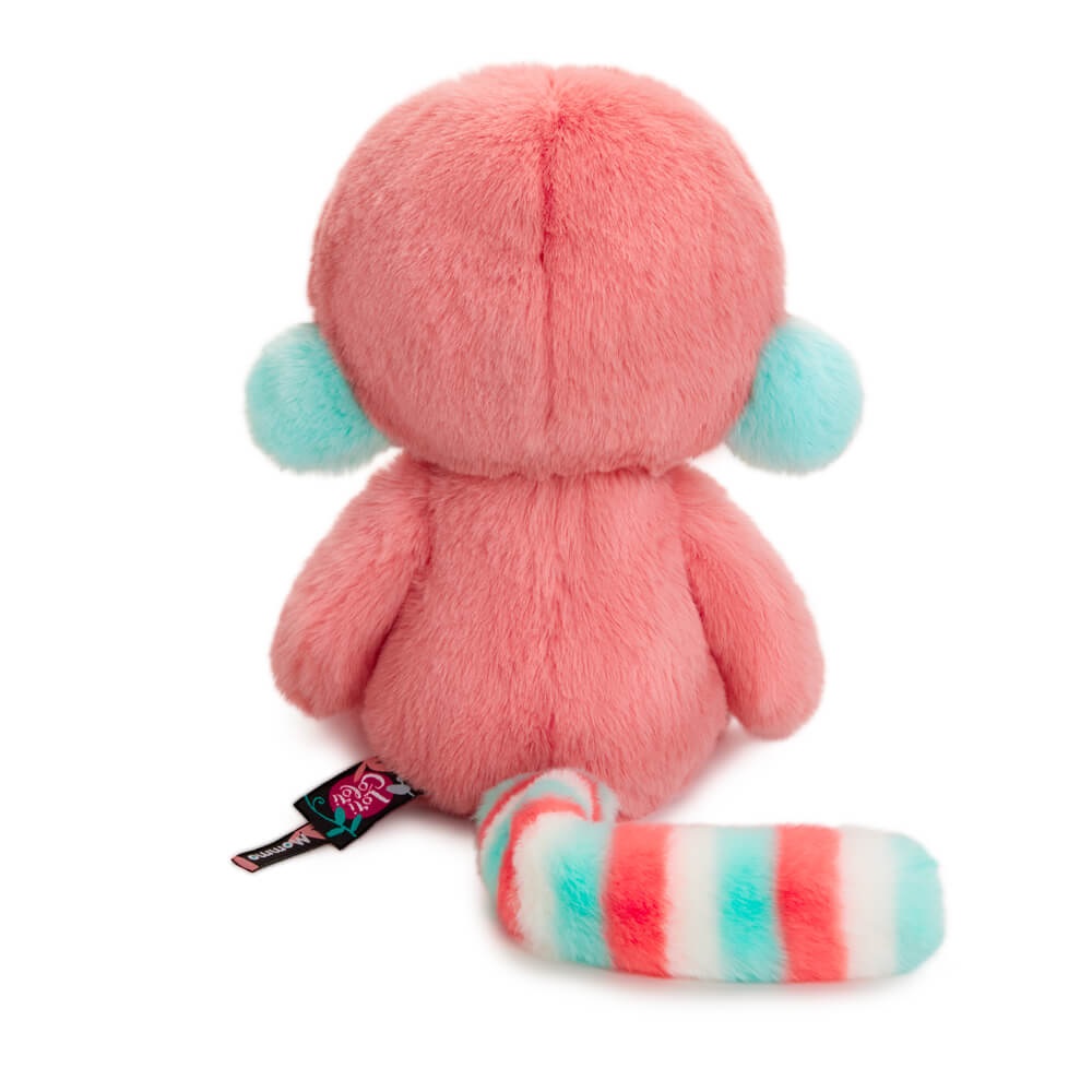 Сладкоежка Моммо похож на огромную круглую карамельку. Его шубка цвета персикового пунша с белыми прослойками и цвета бирюзовой пастели. Вокруг необычных мятных глаз вышита интересная маска с бирюзовыми и белыми завитками. А яркий носик готов унюхать сладости где угодно.