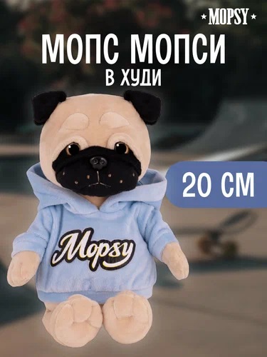 Мопс Мопси в худи, 20 см