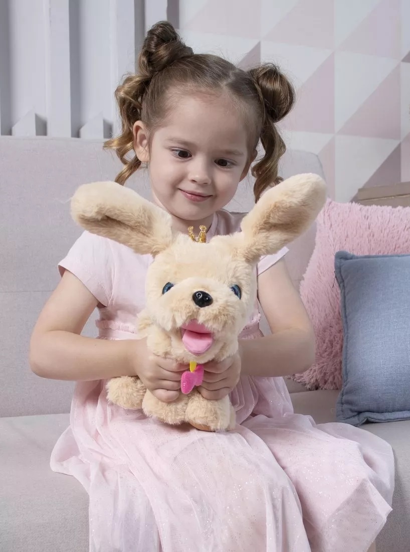 Для того, чтобы привести ушки-хлопушки в действие, собачке нужно нажать на животик.