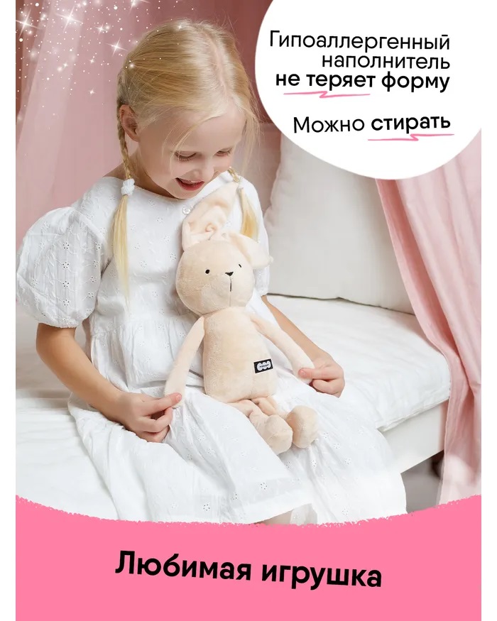 Представляем вам нашего плюшевого зайчика – идеальный подарок для детей и взрослых! Этот мягкий и уютный любимец станет настоящим другом для всех малышей, школьников и подростков. С нежными ушами и милой мордашкой, наш зайка создан для обнимашек и сладкого сна. Он будет верным спутником вашего ребенка, начиная с грудных новорожденных от 0 месяцев и для детей постарше.