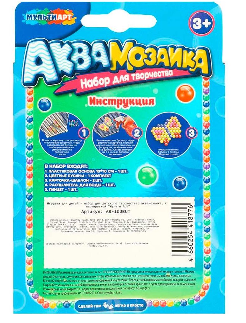 Комплектация: основа - 1 шт., бусины - 100 шт., бутылочка с распылителем - 1 шт., пинцет для выкладывания бусин - 1 шт., картинка - 1 шт.