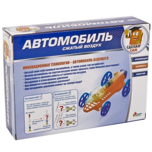 Невероятно интересный опыт надолго запомнится ребенку. Из деталей набора юные инженеры смогут собрать автомобиль, двигатель которого будет работать от сжатого воздуха. В ходе интересного эксперимента ребенок откроет для себя много нового и познакомится с физическими явлениями.