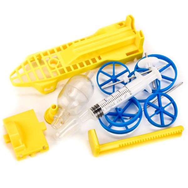 - Предложите ребенку закачать жидкий воздух в специальную камеру и наблюдайте, как он начнет раскручивать двигатель и машина поедет.