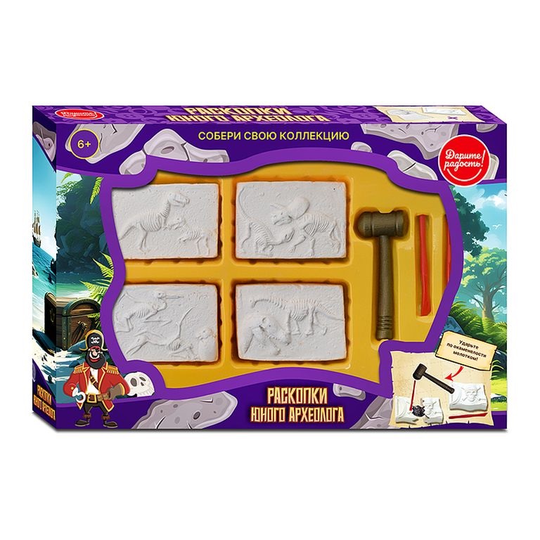 Раскопки "Раскопки юного археолога" В наборе: - окаменелый грунт 4 шт. - молоток 1 шт. - палочки 2 шт. Соответствует требованиям безопасности продукции.