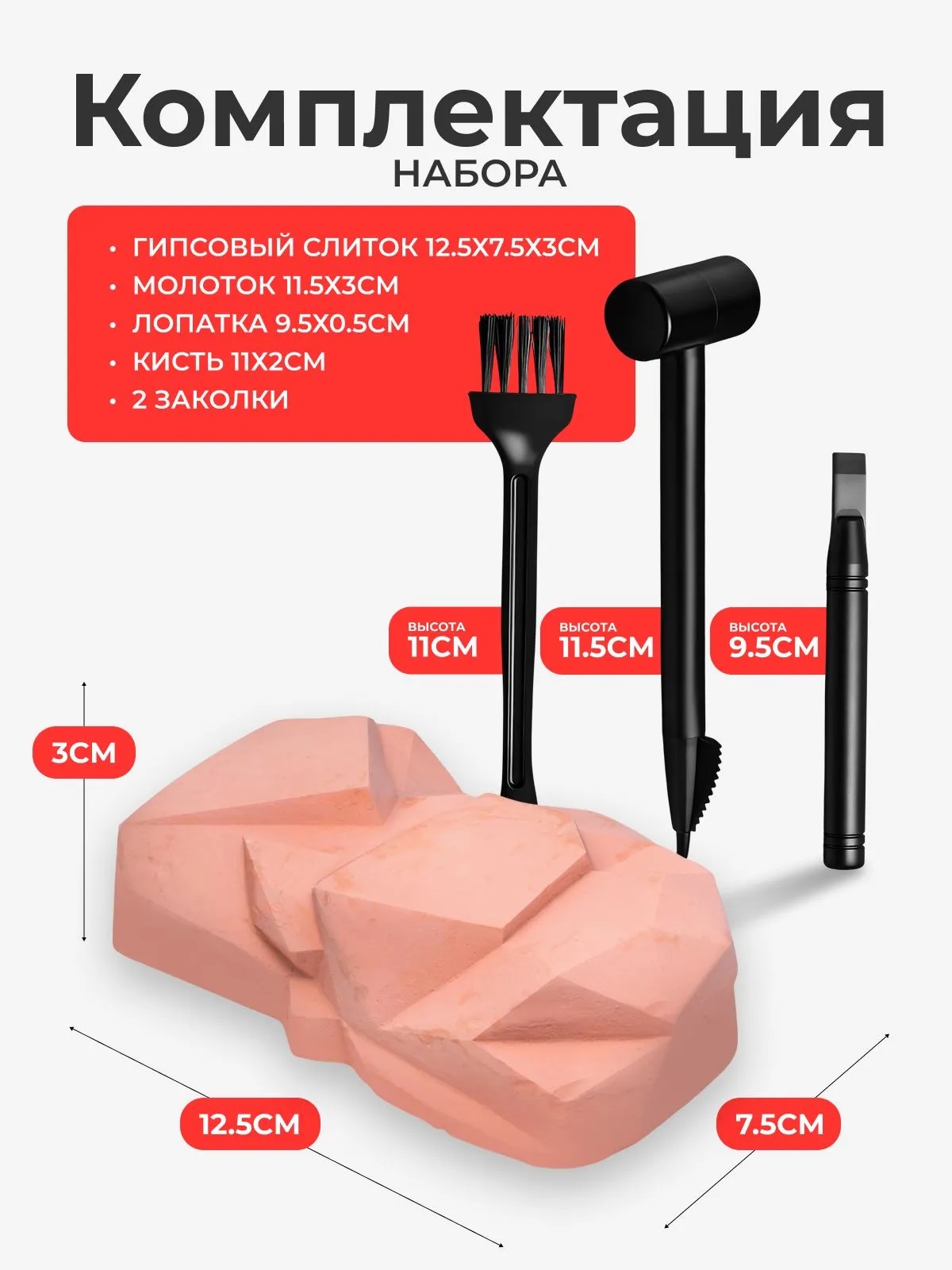- гипсовый слиток (12.5х7.5х3 см.)