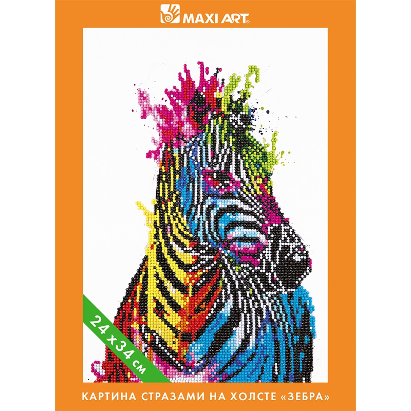 Картина Стразами на Холсте Maxi Art, Зебра, 24х34см, в Коробке