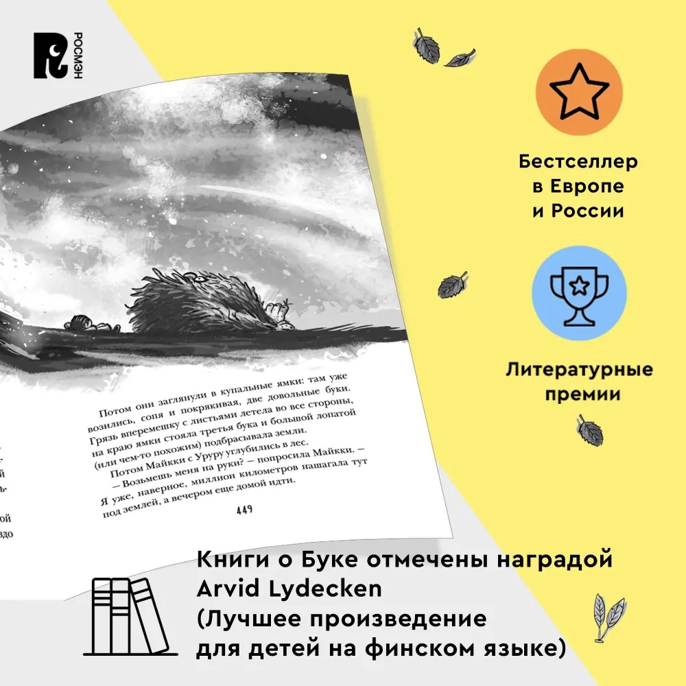 В один прекрасный день Хиллу, Каапо и шестилетнюю малышку Майкки оставляют с няней. Только это не какая-нибудь солидная дама, а самая настоящая… бука! Огромная, мохнатая, сыплет пылью, урчит и спит в шкафу в коридоре. Кто вообще такие буки, откуда они взялись и почему соседских детей тоже оставили с нянями-буками? Чтобы узнать ответы, нужно с букой… подружиться!