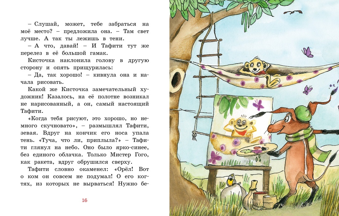 Тафити отлично проводит время, ведь теперь рядом с ним свинка Кисточка, его самый лучший друг, который всегда придёт на помощь! Но одним прекрасным днём случается то, что даже лучший друг не смог предотвратить: орёл схватил маленького суриката! К счастью, Кисточка полна решимости и идей, чтобы организовать смелую спасательную операцию высоко над облаками саванны.