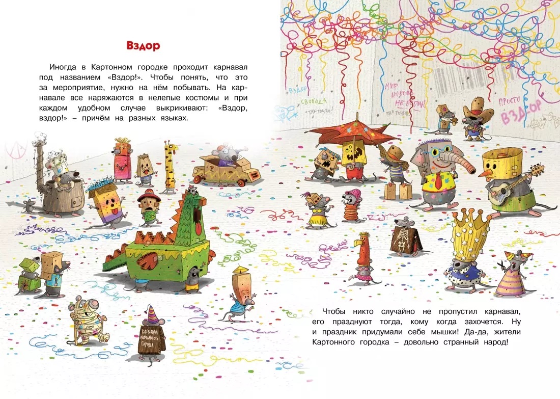 Сказки Картонного городка» – это весёлые истории о самом удивительном, самом необыкновенном городке на свете. Здесь всё сделано из картона – дома, машины, самолёты, даже корабли и космические ракеты. А живёт-поживает в этом городке забавный мышиный народ, с которым непременно стоит познакомиться!