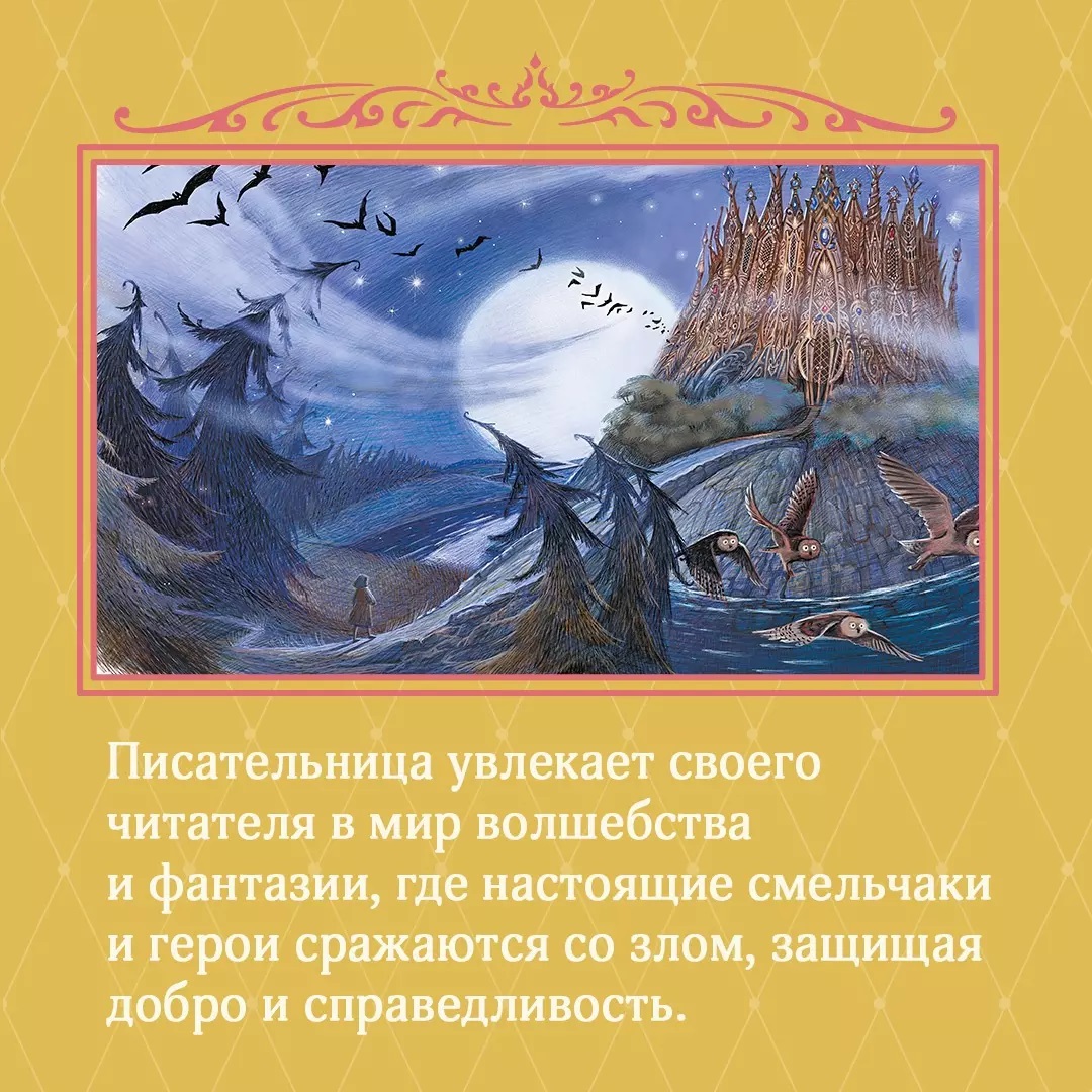 Писательница увлекает своего читателя в мир волшебства и фантазии, где настоящие смельчаки и герои сражаются со злом, защищая добро и справедливость. Чёрные силы сможет победить только тот, у кого в груди бьётся благородное и отважное сердце, полное доброты, любови и сострадания.