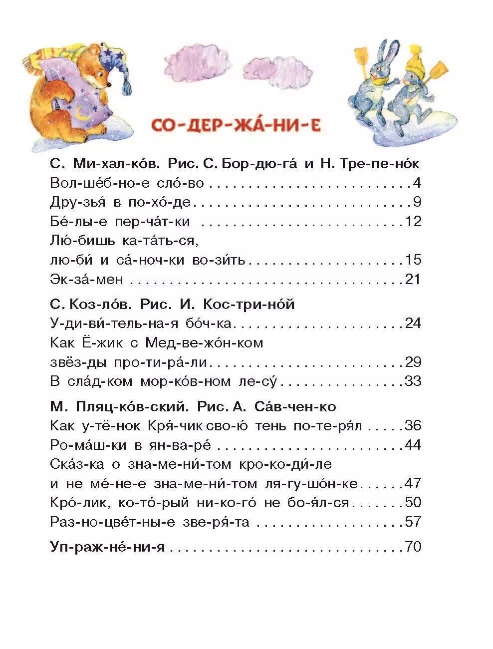 В этой книге собраны лучшие сказки знаменитых отечественных авторов. Поучительные истории, волшебные сказки и весёлые приключения обязательно понравятся малышам и поможет ему полюбить чтение. А увлекательные игры с буквами и словами улучшат технику чтения, память и внимание.