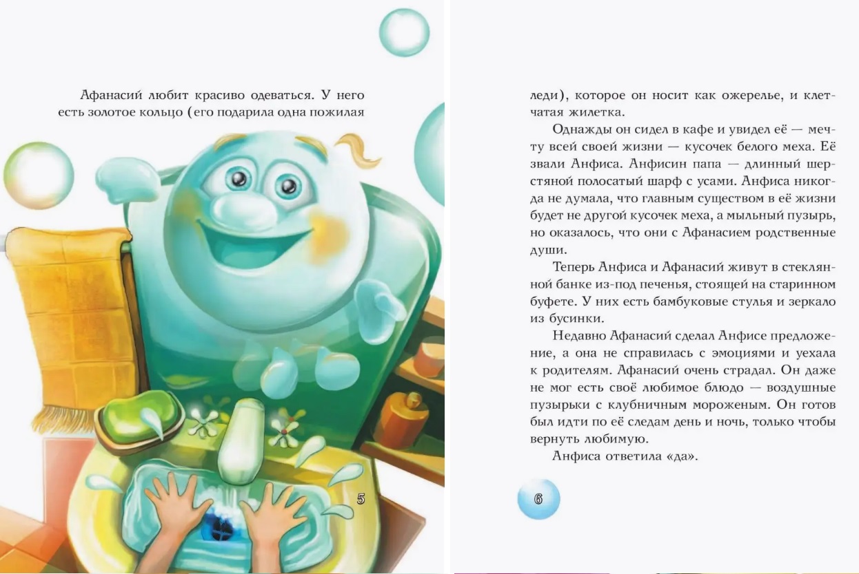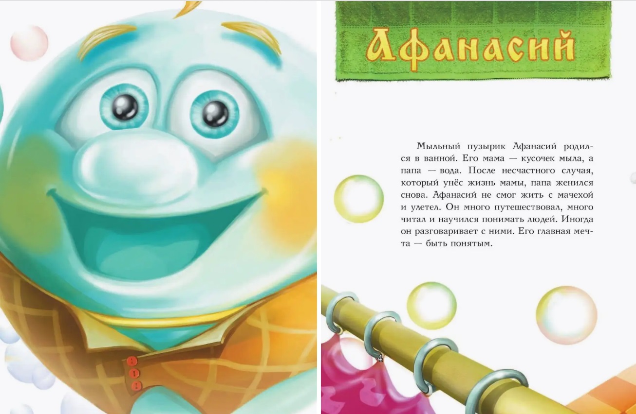 Мыльный пузырик Афанасий родился в ванной. Его мама — кусочек мыла, а папа — вода.