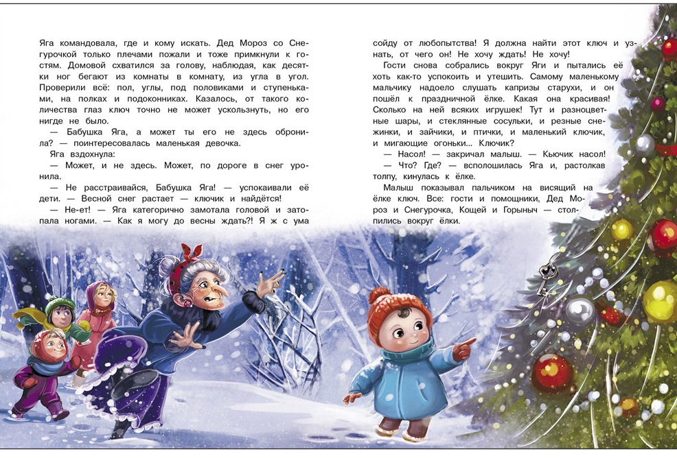 Перед Новым годом в Вотчине Деда Мороза как всегда предпраздничная суета. Домовой украшает главную елку, Дед Мороз читает письма от ребят и собирает подарки, Баба Яга пишет сценарий праздника. Но тут случилось неожиданно событие: вместе с письмами доставили коробку, на которой было написано: “Подарок для Бабы Яги”. И что же вы думаете было в посылке? Ключ! И больше ничего. Баба Яга сбилась с ног, пытаясь понять от чего этот ключ и кто его прислал. Ее расследование превратилось в увлекательный квест, к которому подключились все гости. Удастся ли Бабе Яге разгадать тайну ключика? Читайте и узнаете!