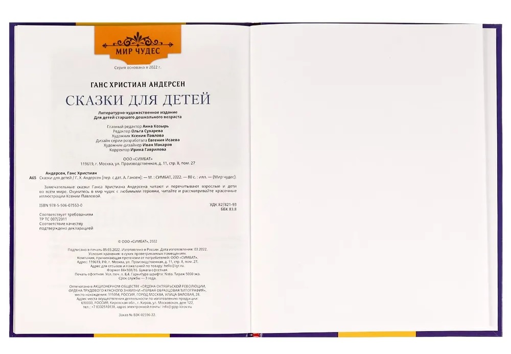 Книга «Г. Х. Андерсен. Сказки для детей» из серии «Мир чудес» ТМ «УМка» - отличный подарок для ребёнка: