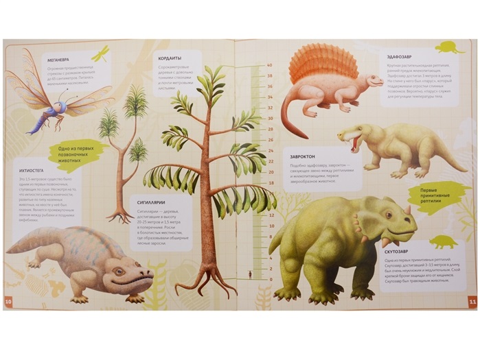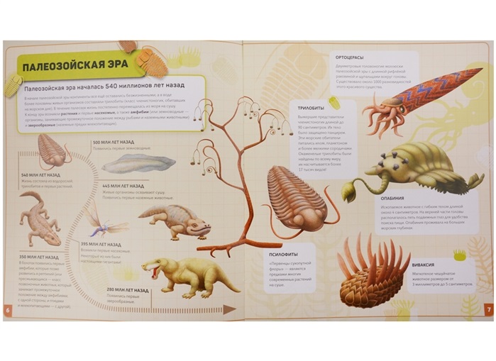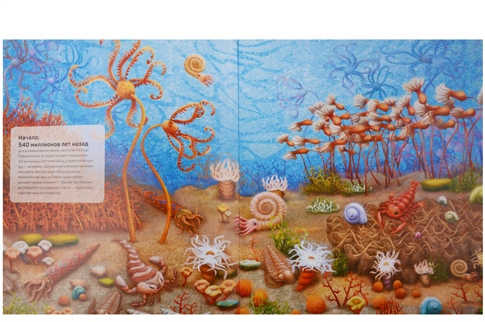 Давай отправимся в путешествие во времени и посмотрим на эволюцию Земли! Ты можешь исследовать океаны эпохи палеозоя, а можешь навестить травоядных и плотоядных динозавров мезозойской эры. Мы покажем тебе крупнейшего наземного млекопитающего и предшественника слонов. И, наконец, ты познакомишься с "великим прапрадедом", предком всех людей. А теперь, пожалуйста, располагайся и скорее погружайся в чтение.