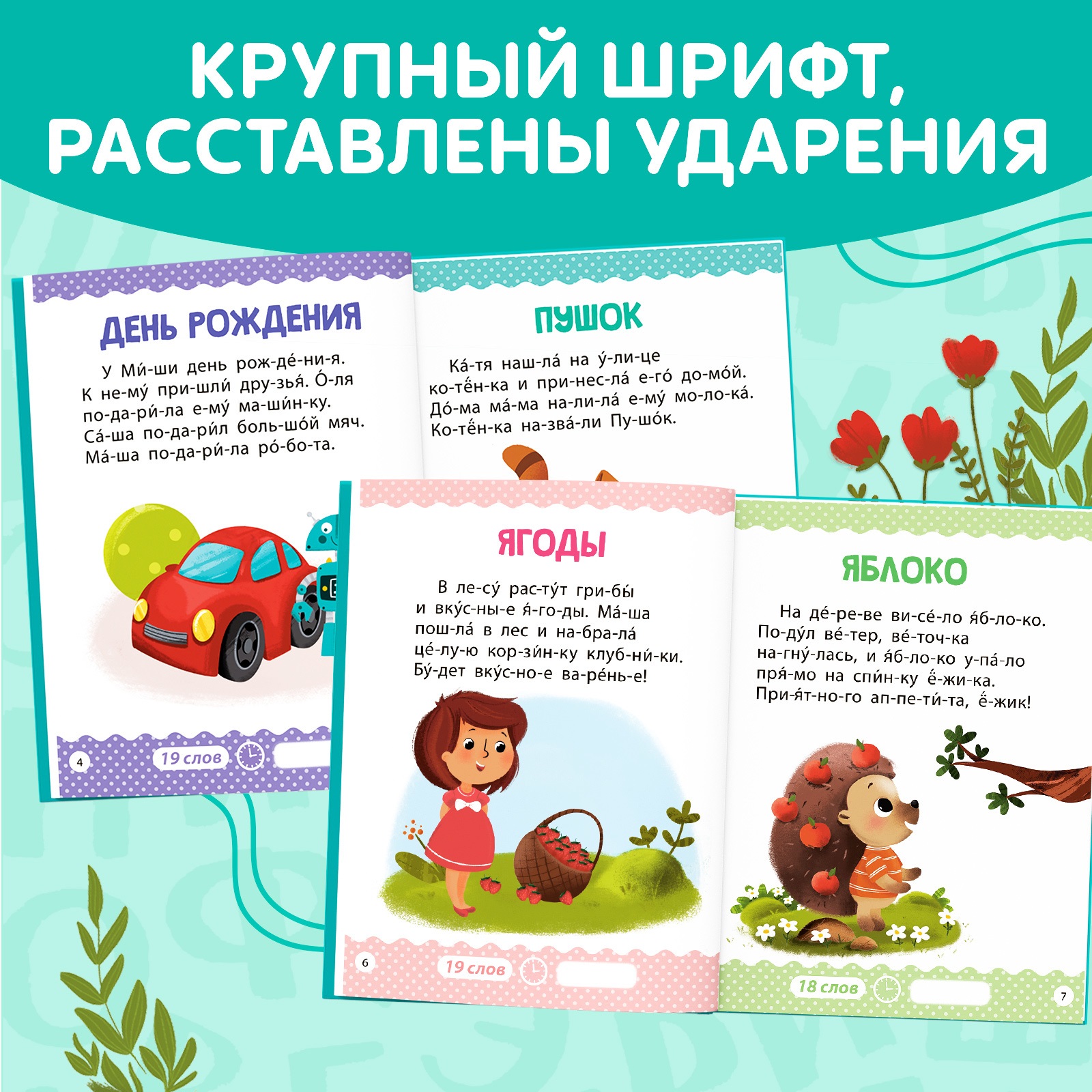 Шрифт издания крупный, чтобы малышам было удобно осваивать навыки чтения.