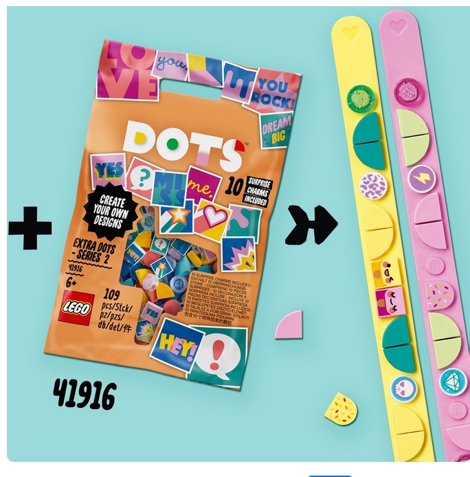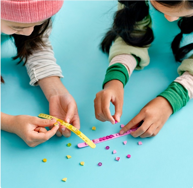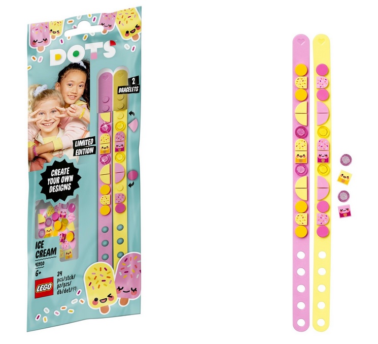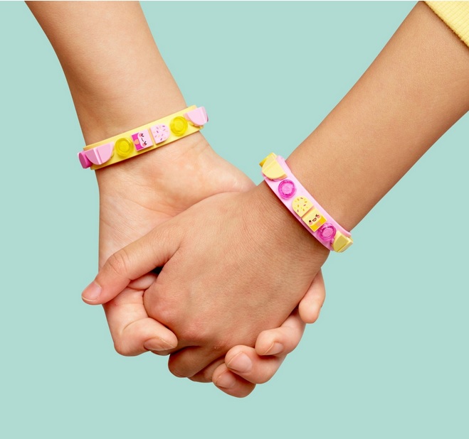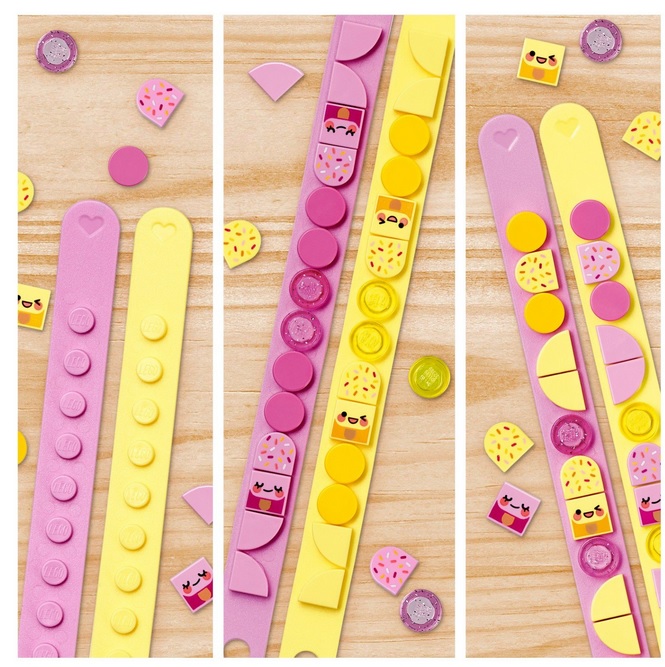 В наборе для творчества LEGO DOTS имеются браслеты пастельных оттенков – желтого и розового: они отлично подойдут под любой наряд.