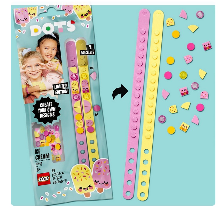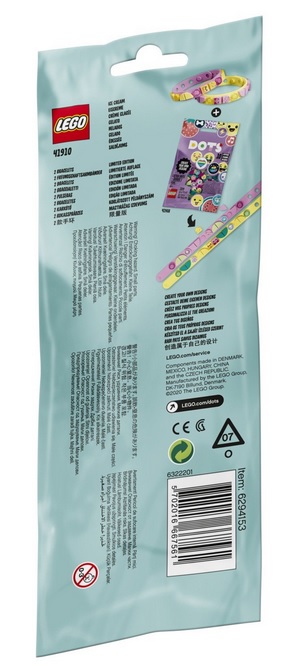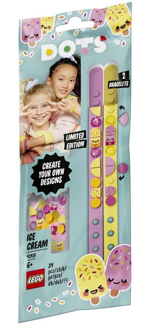 Приблизьтесь к творческому миру вместе с конструктором LEGO DOTS 41910 Браслет для подружек «Мороженое». Придумывайте новые варианты дизайна и удивляйте своих друзей. Открывайте коробки, доставайте браслеты и приступайте к самому интересному – украшению. На упаковке есть несколько шаблонов, но вы также можете придумать собственный уникальный дизайн. Подберите тайлы, которые будут подходить к вашему сегодняшнему образу и настроению, и становитесь самыми стильными и модными. Творческая игрушка – отличная идея для новогоднего подарка ребенку в 6 лет.