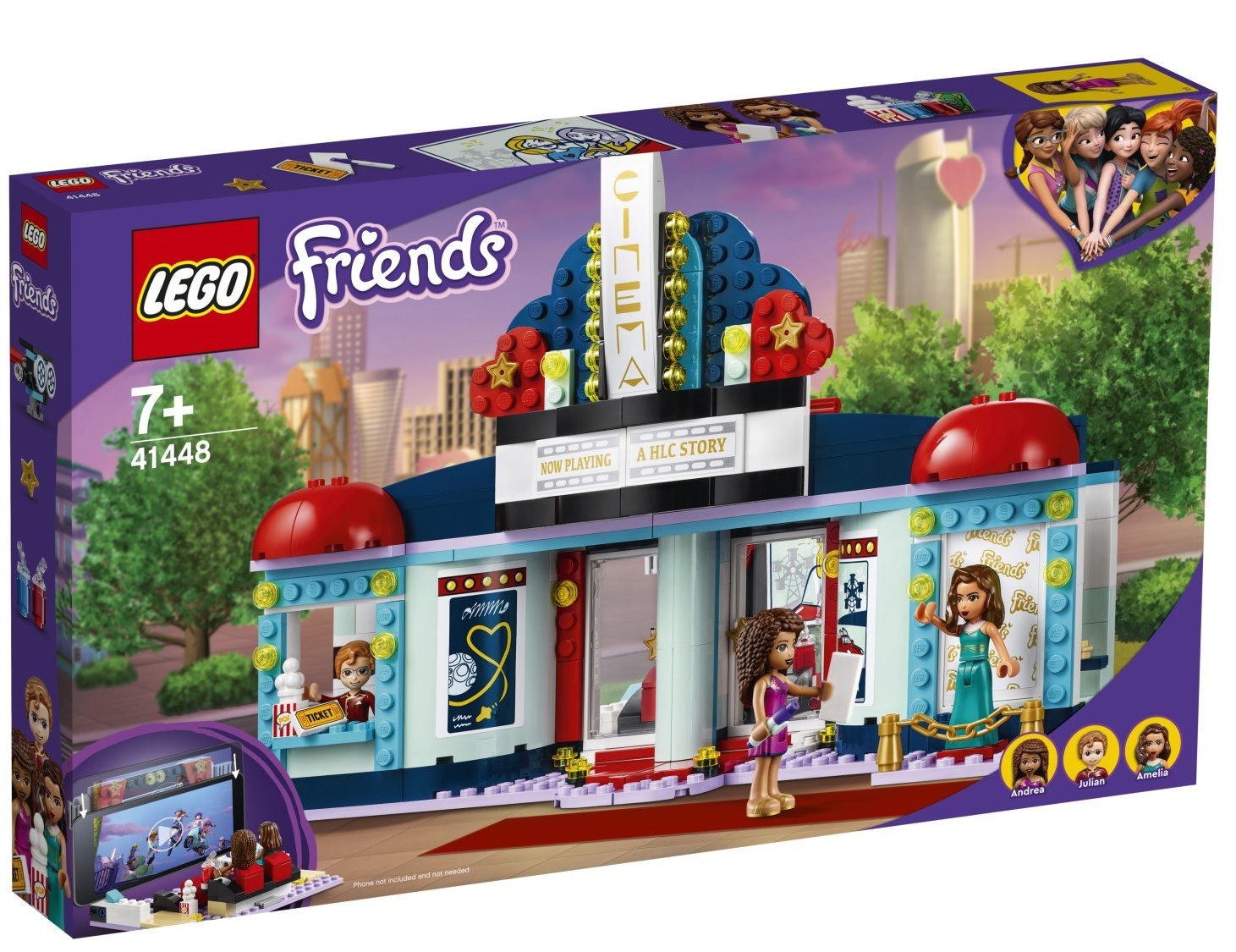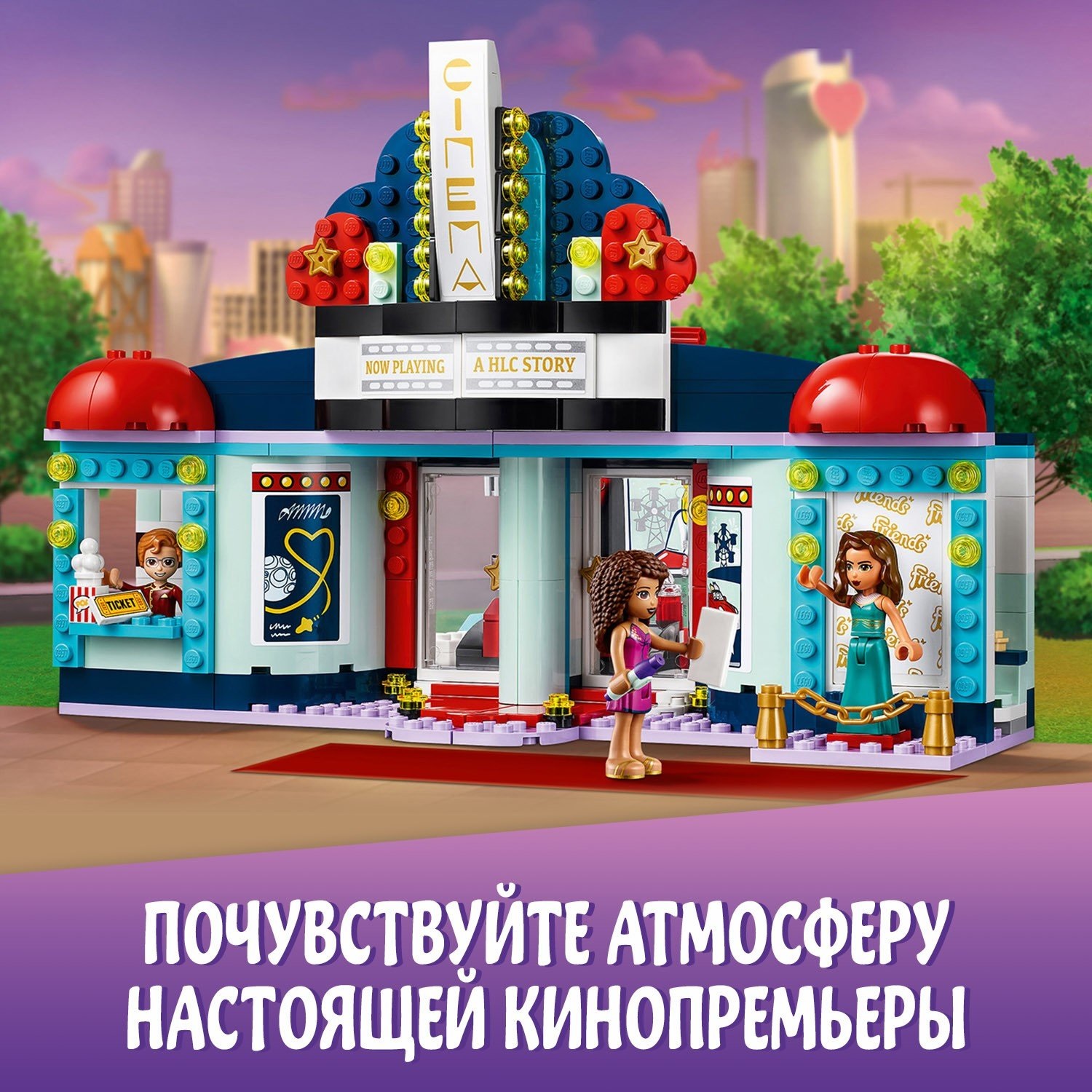 Отправьтесь на премьеру в любимого фильма вместе с конструктором LEGO Friends 41448 «Кинотеатр Хартлейк-Сити». Андреа обожает кинозвезду Амелию и мечтает получить ее автограф: составьте девушке компанию и посмотрите интересное кино. Встаньте в очередь и заберите долгожданные билеты на премьеру фильма с Амелией. Не забудьте купить фруктовый коктейль и попкорн и занять VIP-место. Конструктор с фигурками – замечательный новогодний подарок ребенку старше 7 лет.