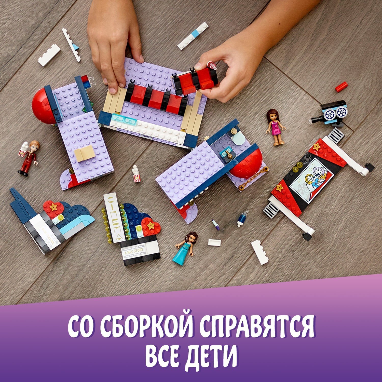 Из реалистичных мини-фигурок дети могут выбрать для себя роль любого персонажа: кинозвезду Амелия, поклонницу Андреа или работника кинотеатра.