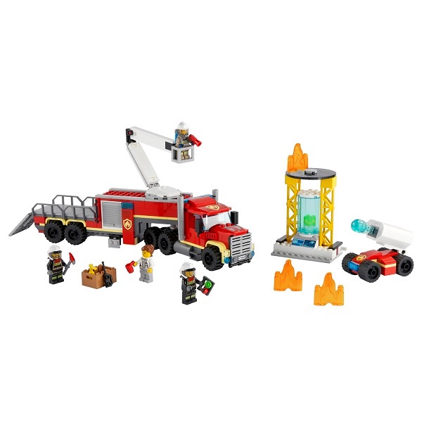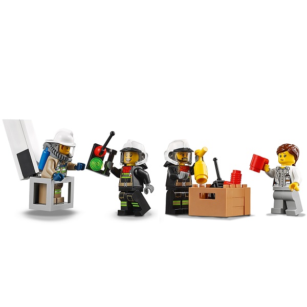 Игровой набор из сериала «LEGO City: приключения» со спасательной техникой для тушения пожара – большим трейлером, в котором есть все необходимое для спасательных работ. В процессе тушения огня спасатели используют робота с водяной пушкой, шарнирный подъемник и инструменты . Во время тушения огня на станции происходит катапультирование большой капсулы.